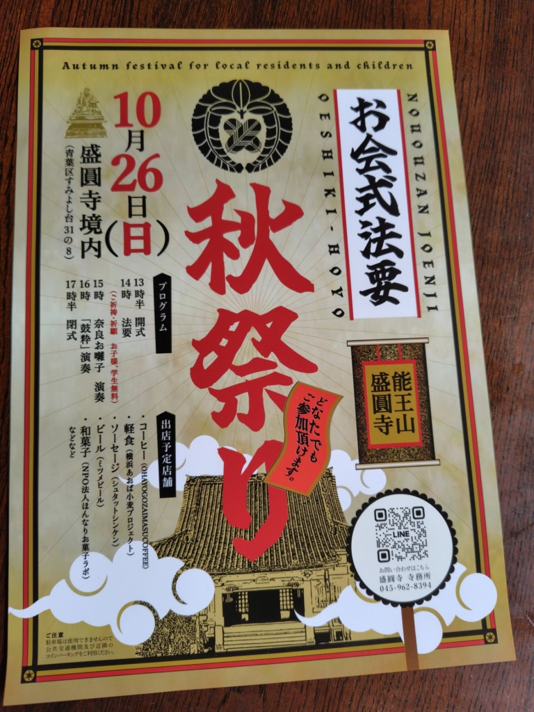 10月26日(日)の午後、青葉区すみよし台の盛圓寺さんの秋祭りに小さなマルシェを出しました。