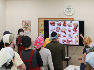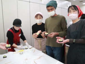 事前に作り方動画でスタッフに予習をしてもらい、当日も作り方工程をモニターに映し出して参加者にも参考にしてもらう、というやり方を考えました。