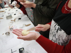 包餡したり、切り込みを入れたり、先を尖らせたり、小さなパーツを貼り付けたり。